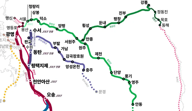 경강선 서울역 ↔ 강원(강릉) 서울~강릉을 잇는 전체 노선 이름